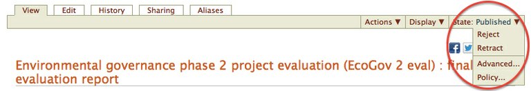 3. To retract content, set the state to retract. If you have permission to edit the content, that is, you are the owner, an edit tab will become available, allowing you to modify the content.